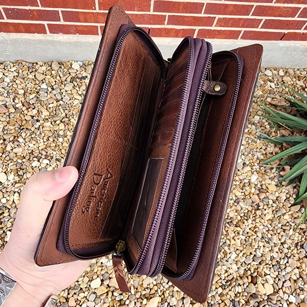 This great wallet can be used so many ways and you can carry it as a wristlet or a crossbody. 2 separate zipper compartments add so much room in this compact bag.