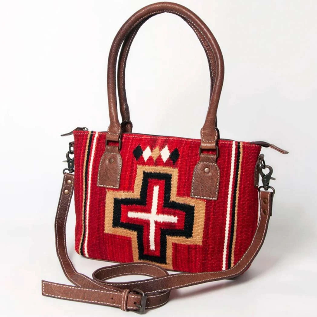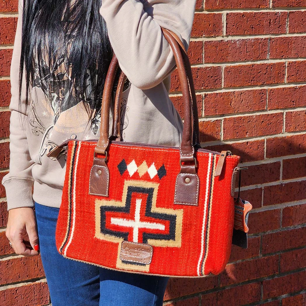 How cute is this red aztec Blanket bag? Sure to add a great pop of color to any look.