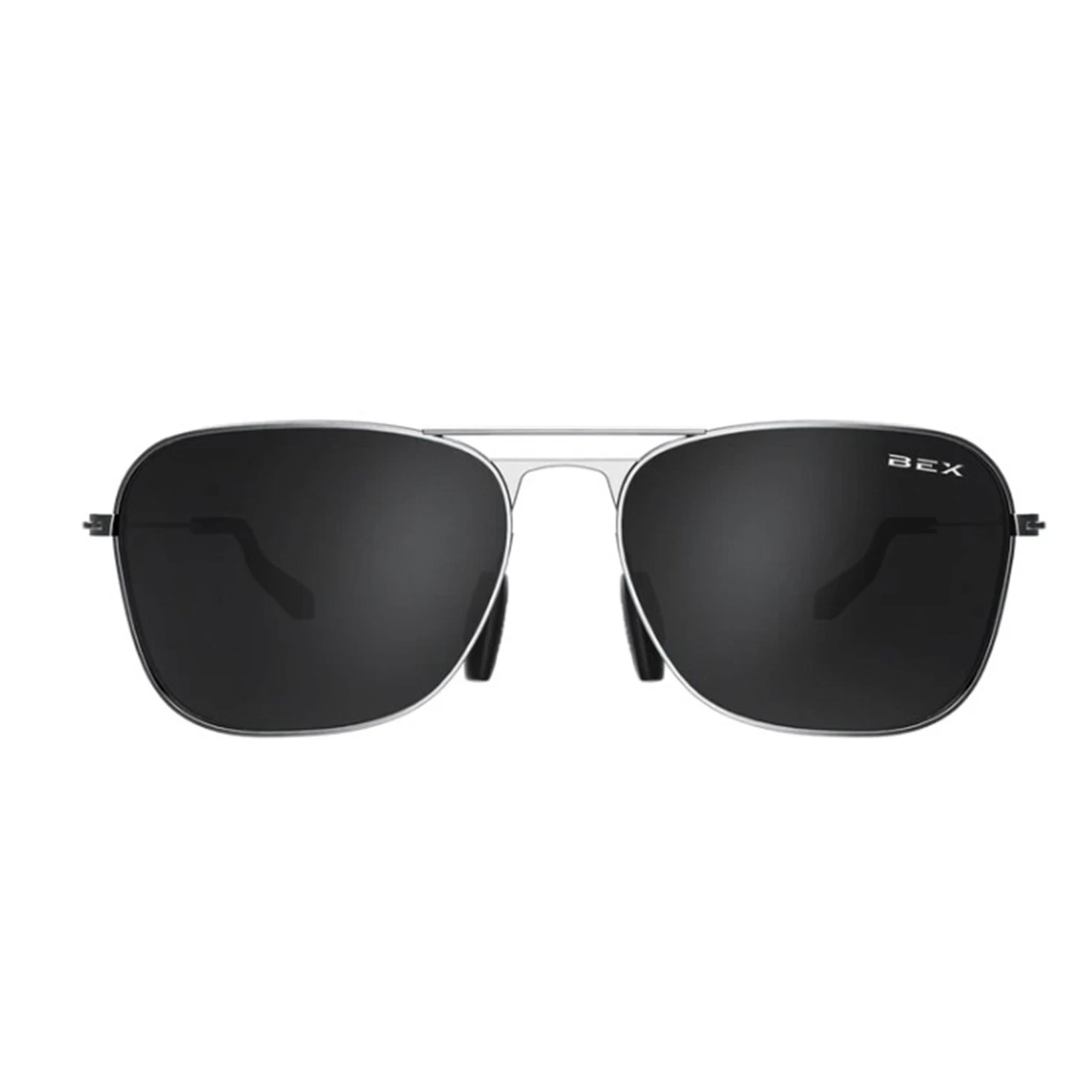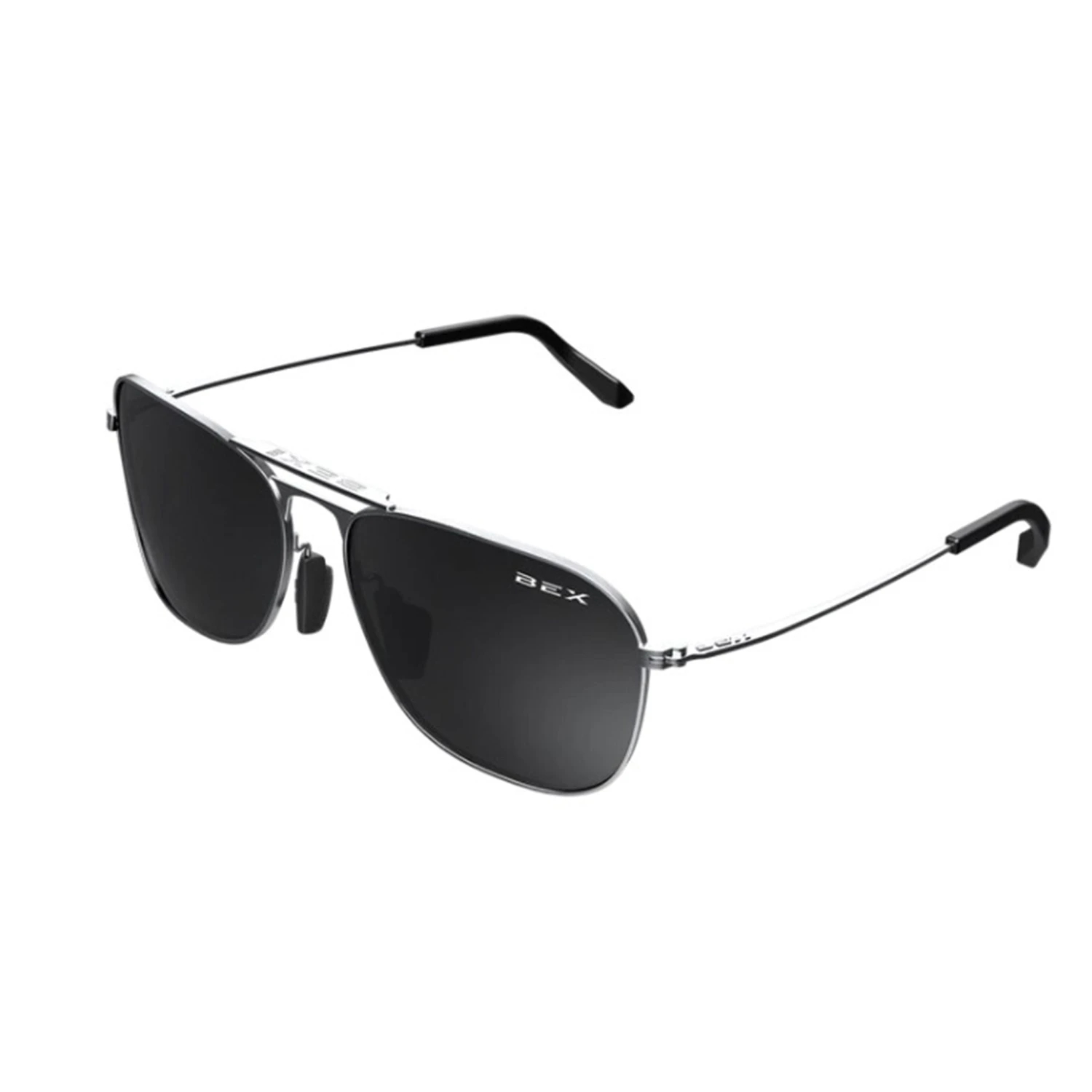 - Shiny silver frame and a BEX live gray lens.