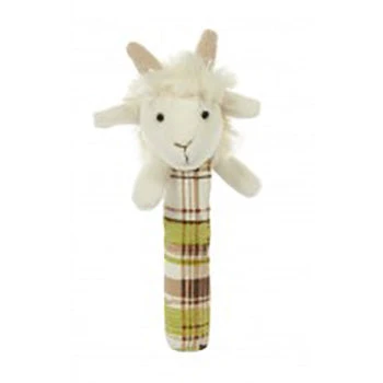 Goat stick rattle crinkles as well as rattles! This stick rattle is made from soft cotton jersey topped with a plush goat head and sized to fit tiny hands.