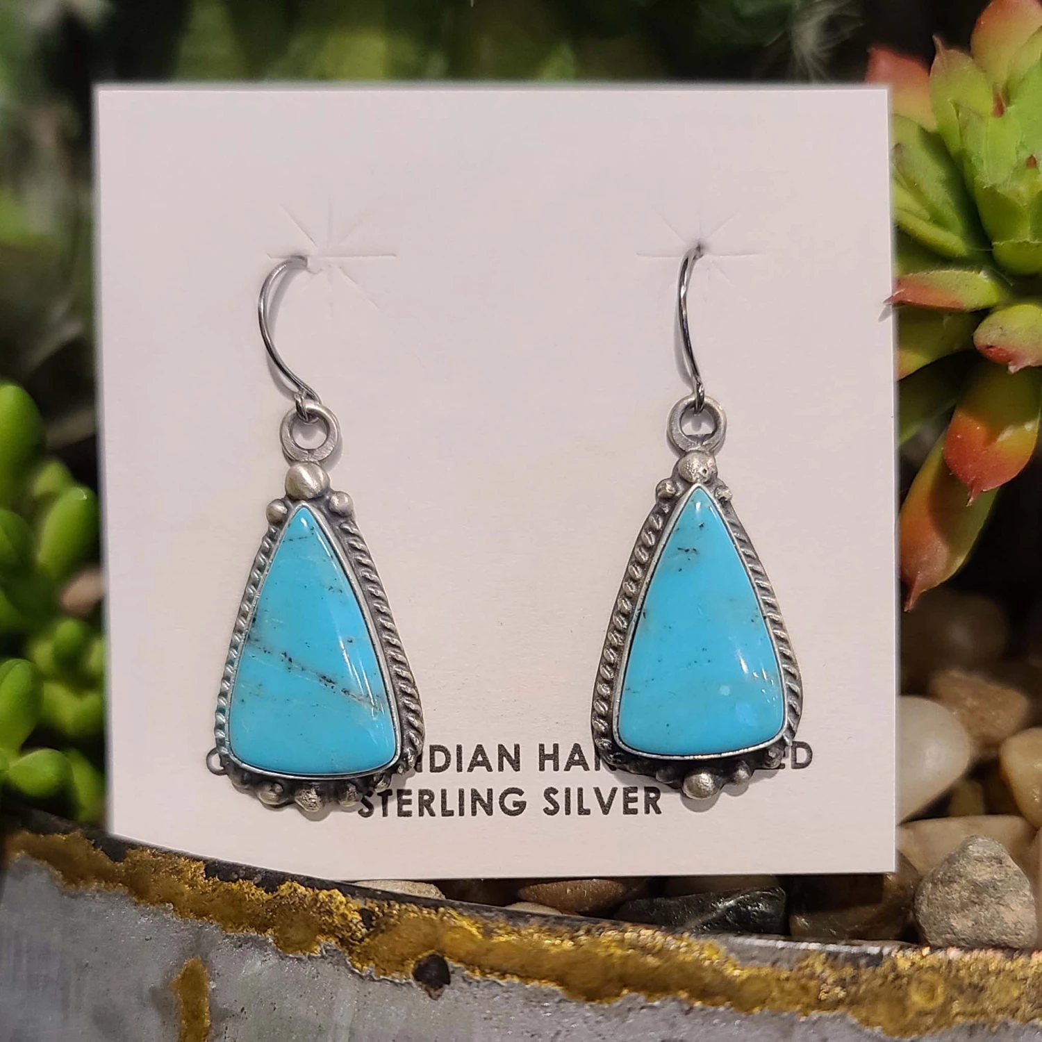 These are a great pair of triangle turquoise dangles.