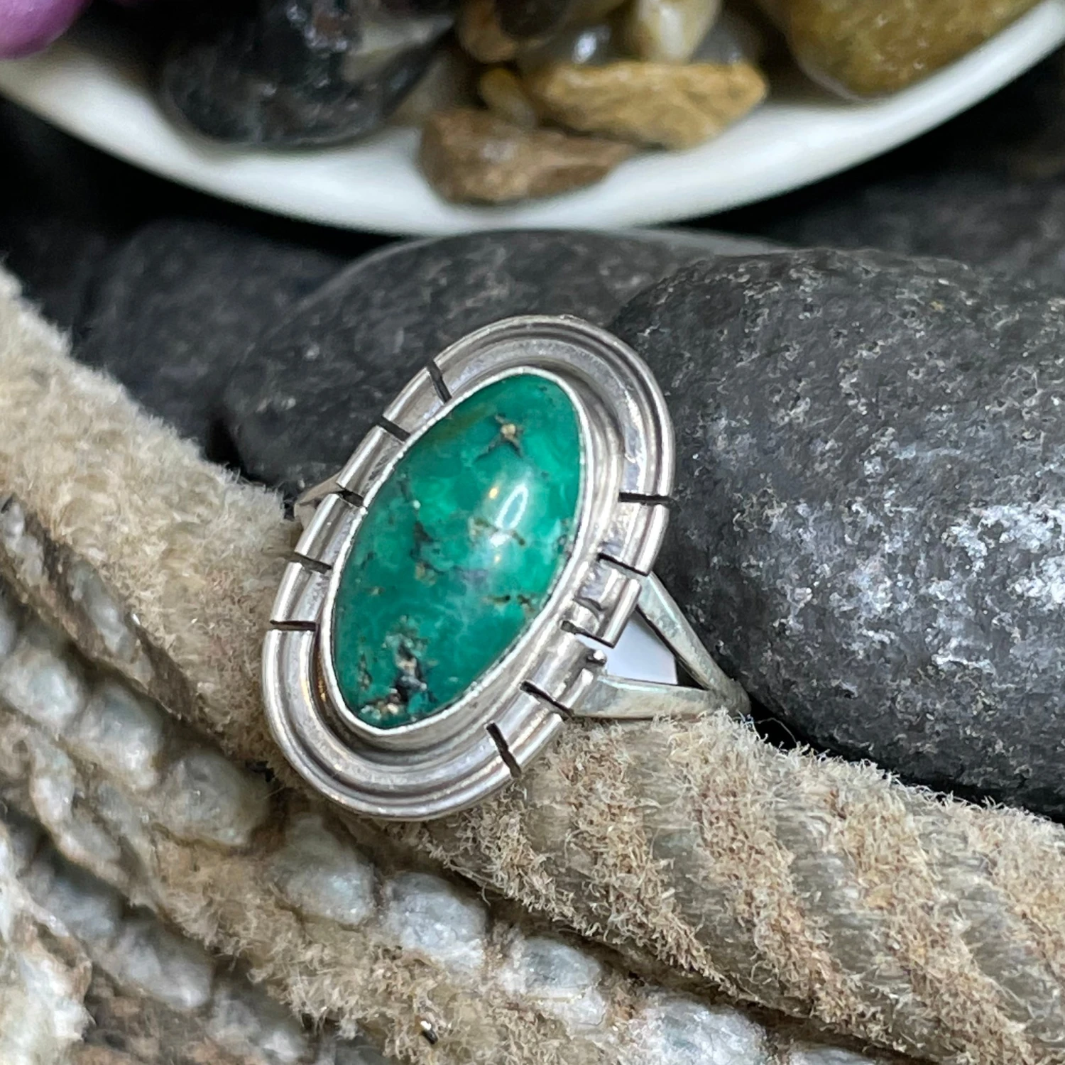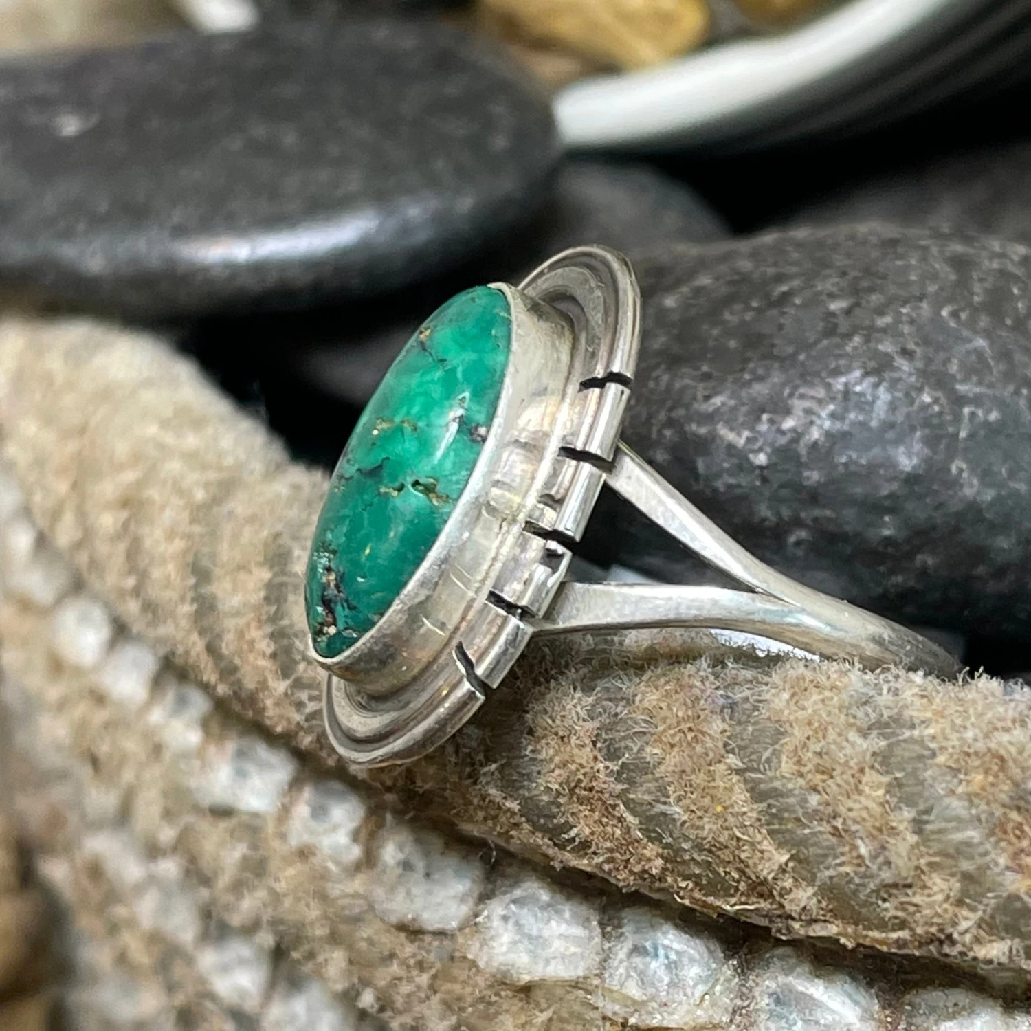 This sweet Kingman green turquoise ring is simple perfection. We just love the vibrant green color in this stone.