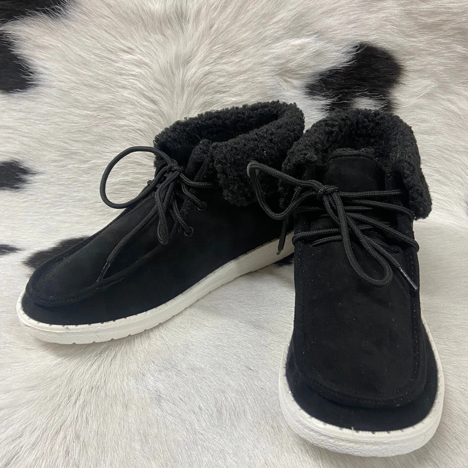 These ankle booties are perfect for keeping the feet and ankles warm in those cooler temperatures. She will stay warm and comfortable with the faux fur collar on the ankle and the cushioned insole!