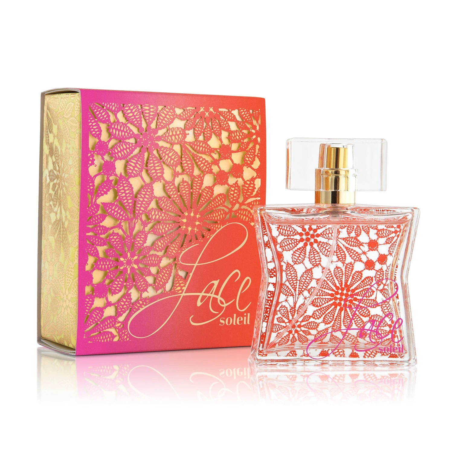 Lace Soleil is ”daytime flirty” perfect for brunch of a day of shopping. Fresh and playful Lace Soleil blends delectable passion fruit and juicy peach with peony blossom and warm amber for a sparkly and flirty scent.