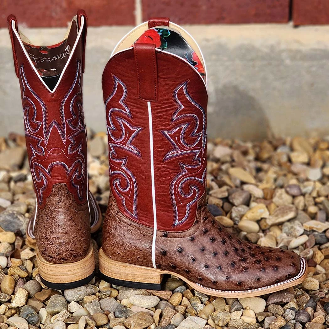 These beautiful tobacco colored full quill ostrich boots are classy and durable. They will take you from the office to the arena.