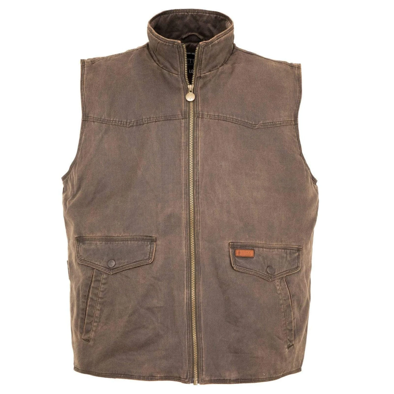 The Landsman Vest is lined in Fleece and features dual entry pockets and a concealment pocket with extended back coverage to keep you warm.