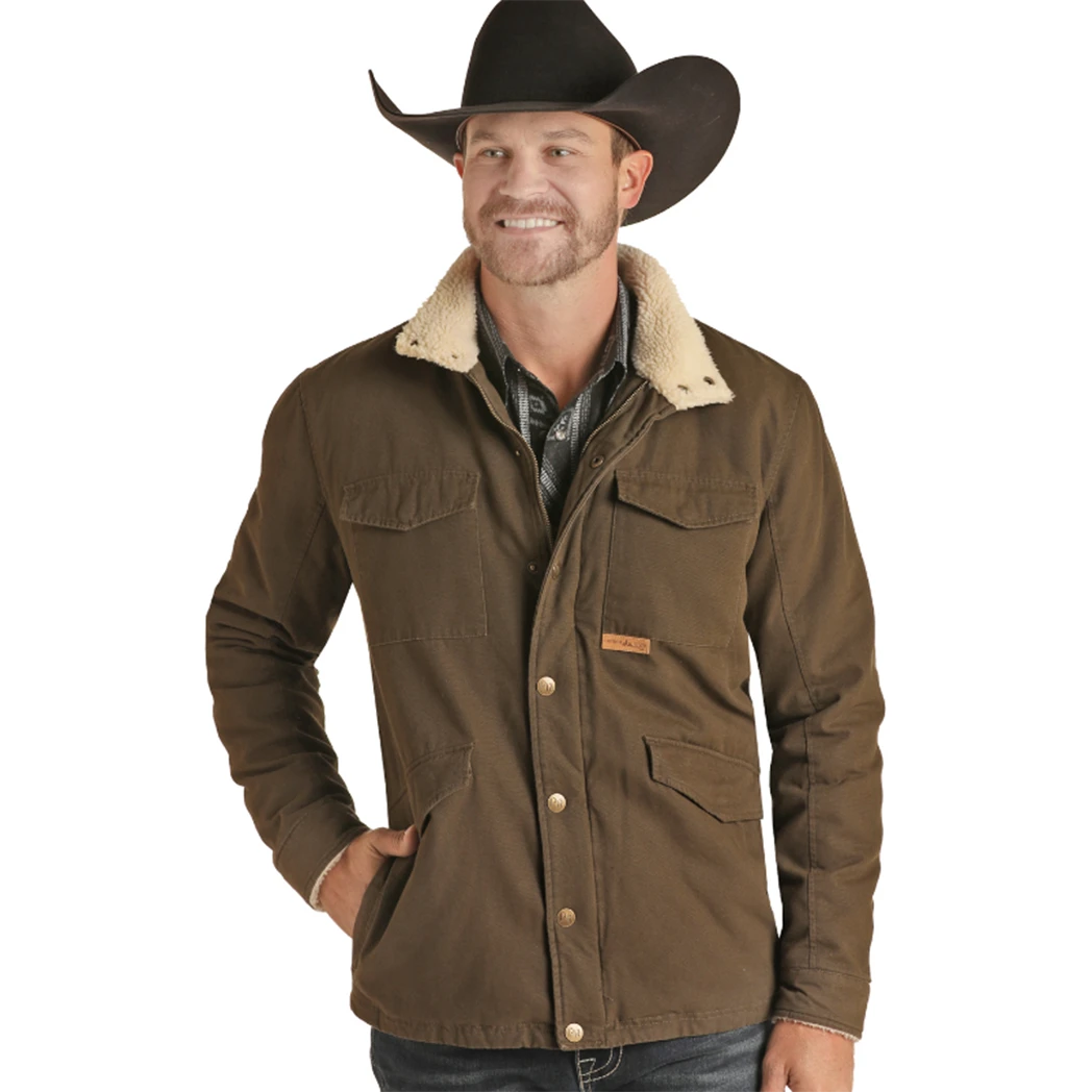 This Brushed Canvas Olive Jacket from Panhandle is the perfect coat to keep you warm while working on the ranch.