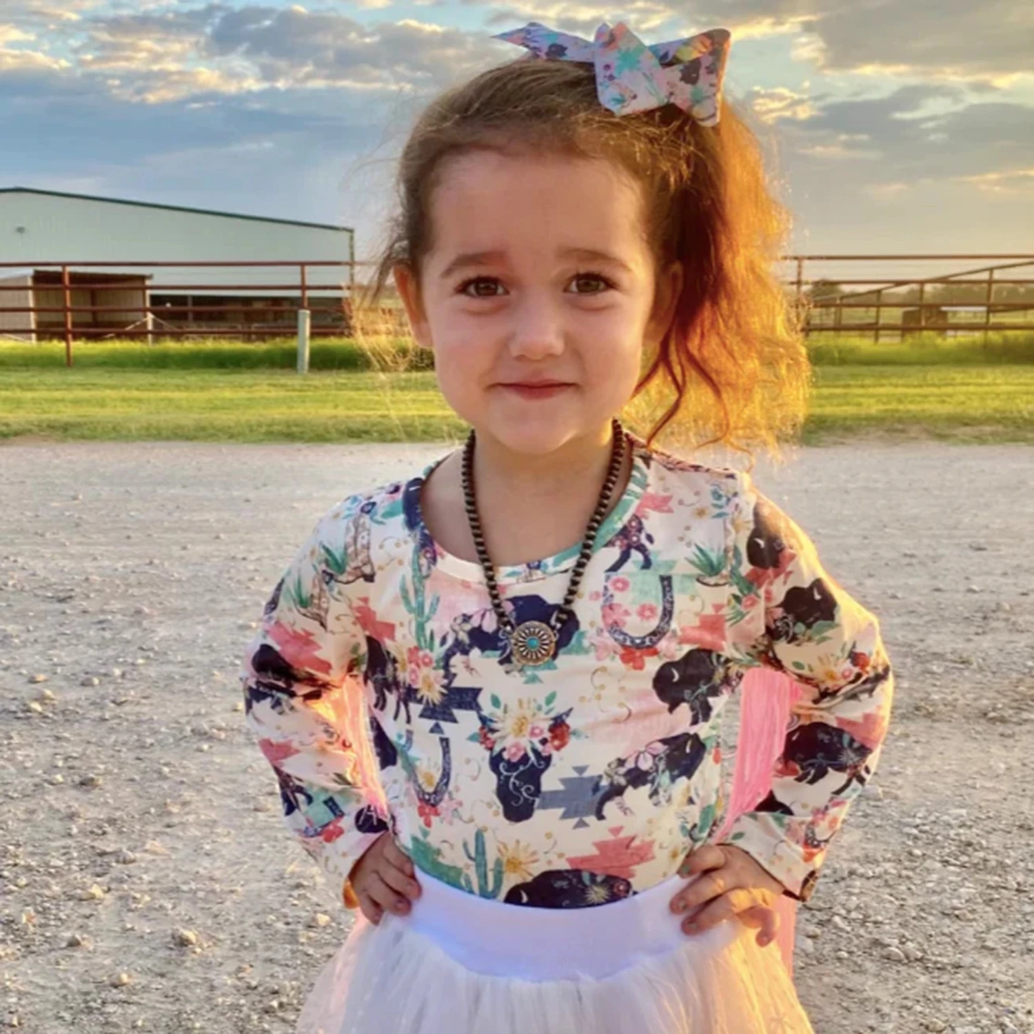 This wild buffalo themed long sleeve shirt from Shea Baby is too cute and a must have for your little girls collection! It features pink fringe on the arms, which she is guaranteed to love!