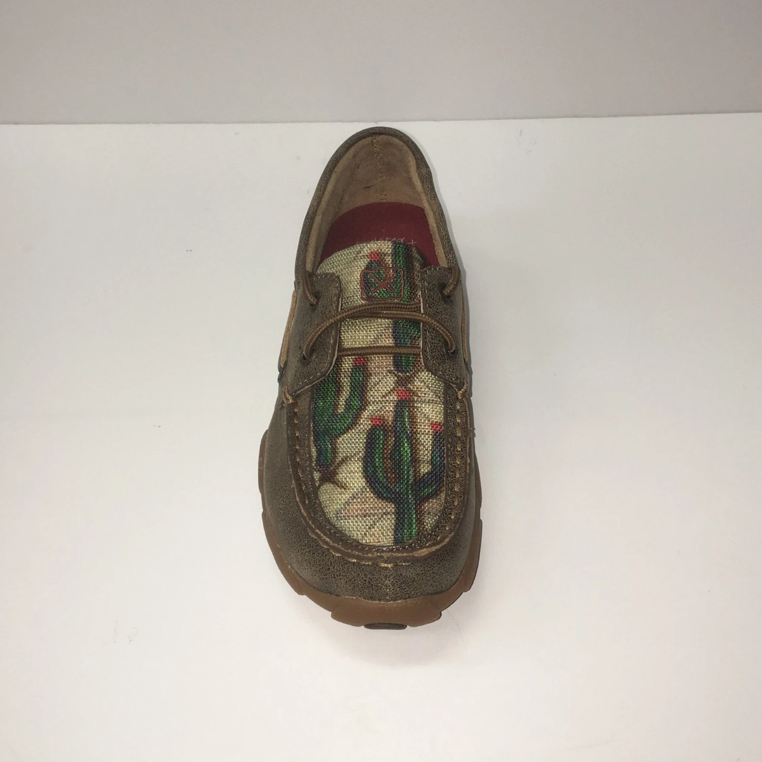 These Twisted X Youth Mocs, feature a canvas like toe, featuring cacti on them! It has a rubber outsole and a removable footbed! They footbed is antibacterial, washable, and moisture wicking! This shoe is a Western Edge Exclusive, meaning you can only get them here at the EDGE!