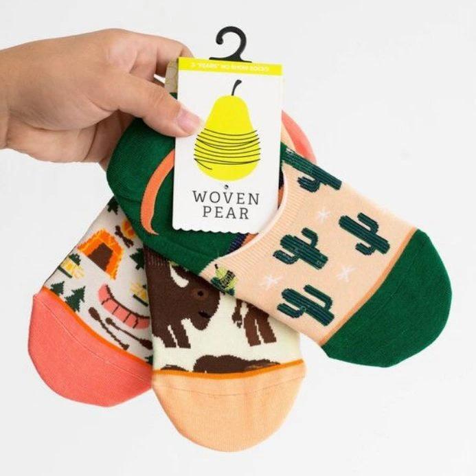 These women’s no show socks are perfect for flats and mocs! They feature fun outdoor themes including cacti, buffalo, and camping items!