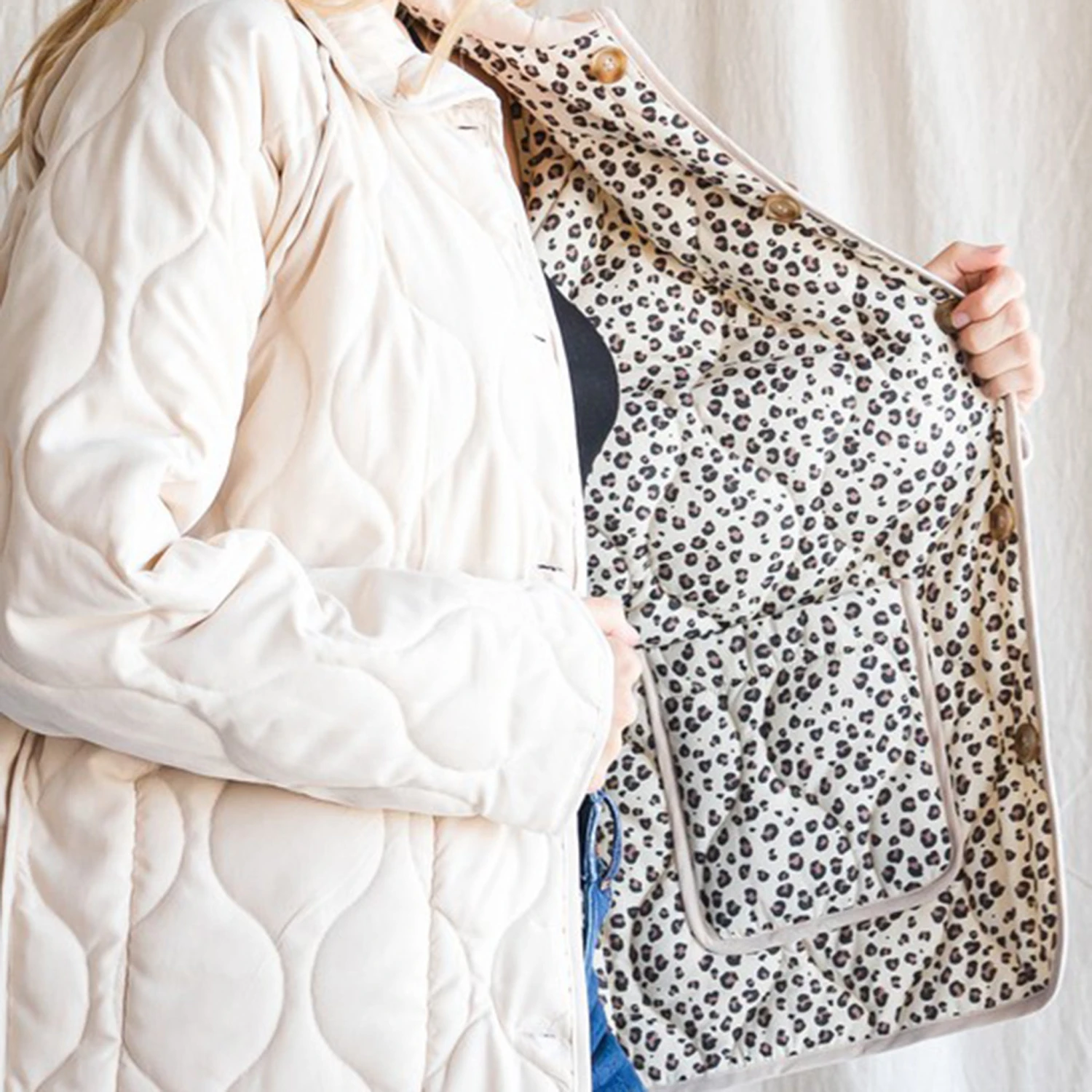 This fun reversible jacket is sure to match any outfit! Quilted stitching and button closure add to the unique look.